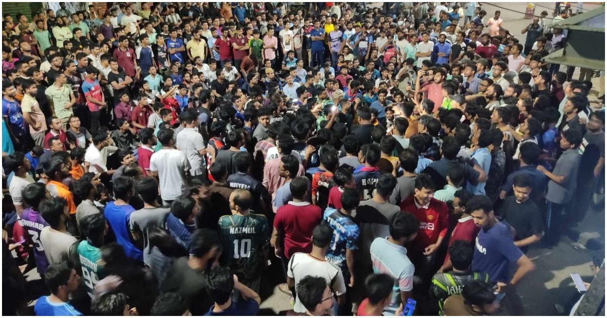 পরে শিক্ষার্থীদের বিক্ষোভের মুখে হল প্রাধ্যক্ষ এসে সেই শিক্ষার্থীকে হলে তুলে নেন।